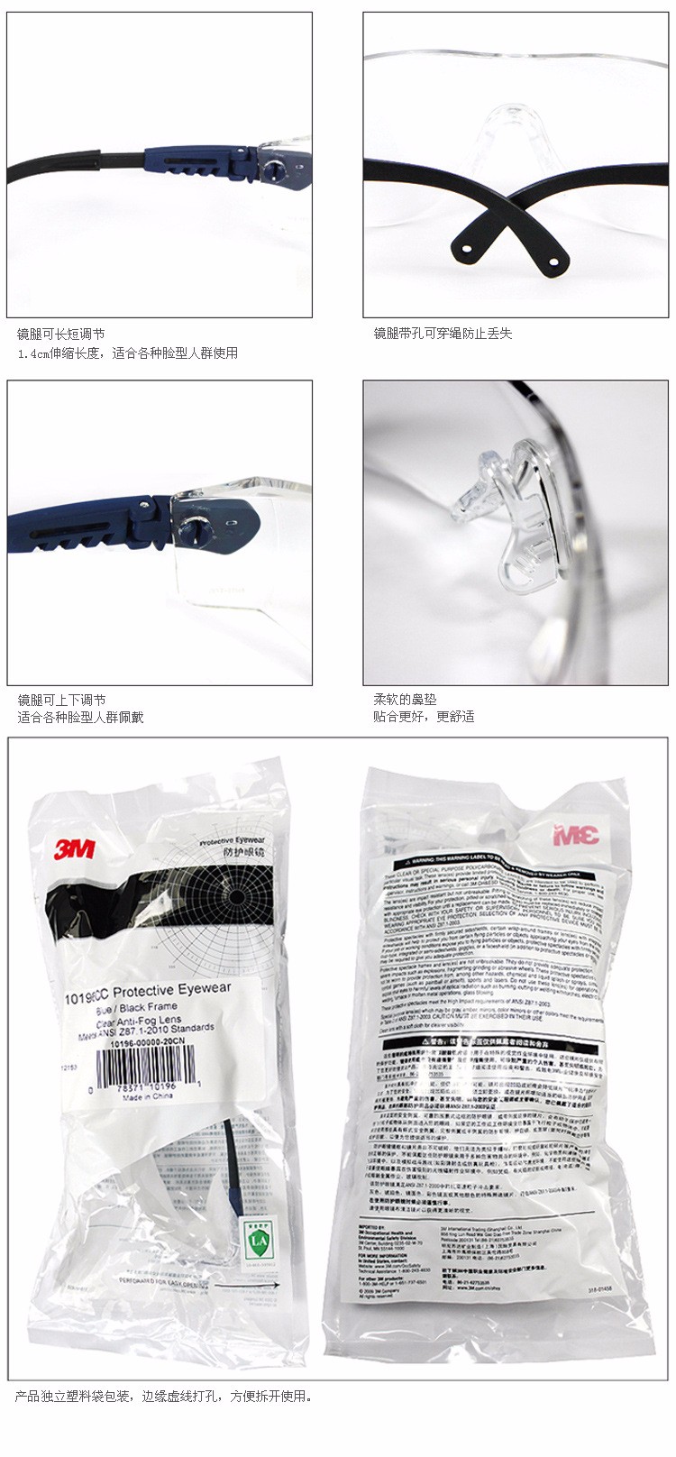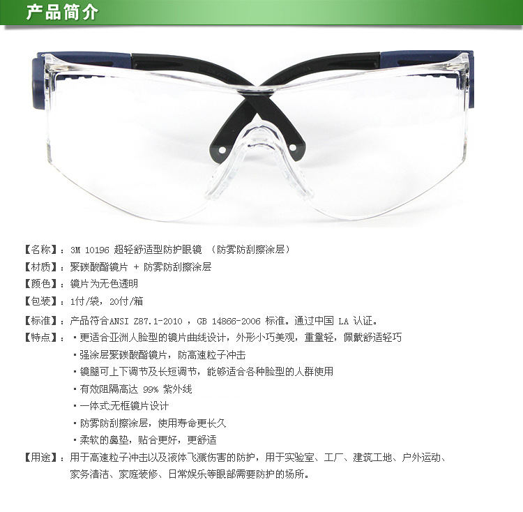 3M 10196护目镜防尘防沙防飞溅防雾防护眼镜 20副/箱(含税)